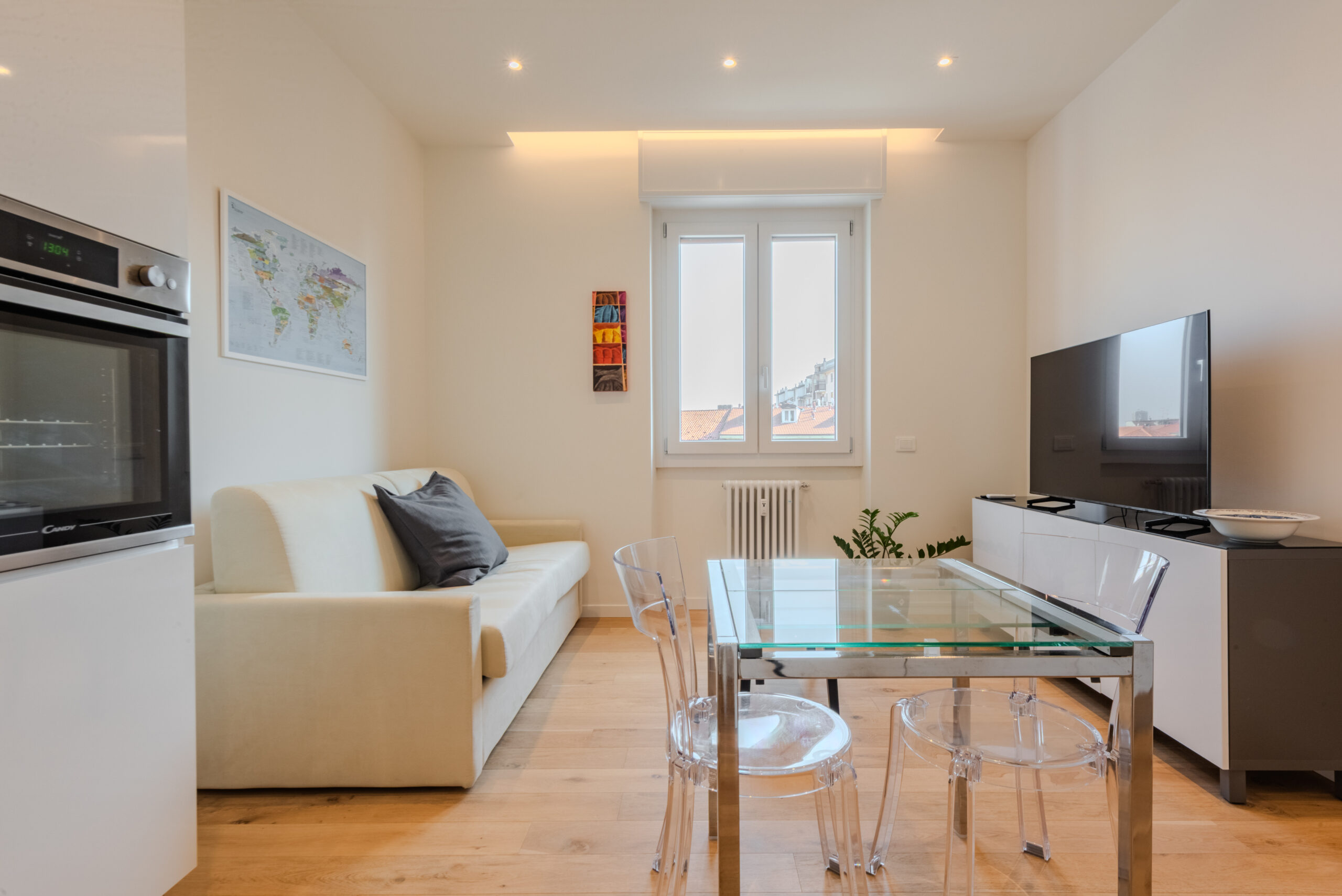 Questo bilocale accoglie i suoi ospiti con atmosfere calde e luminose, regalando fin dal primo istante una sensazione di comfort e accoglienza.